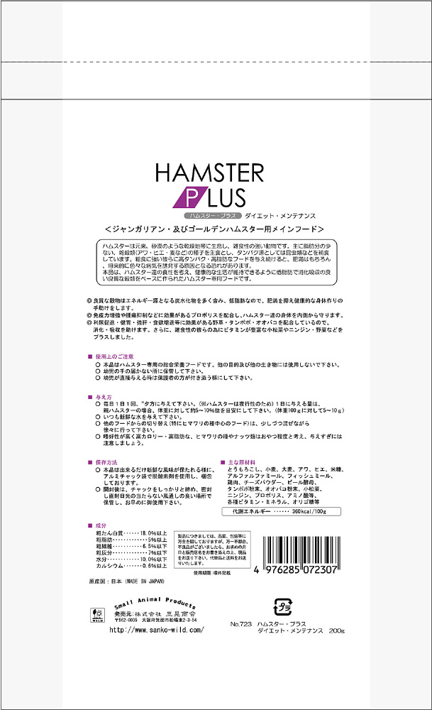 | 商品名 | ハムスター・プラス ダイエット・メンテナンス 200g |