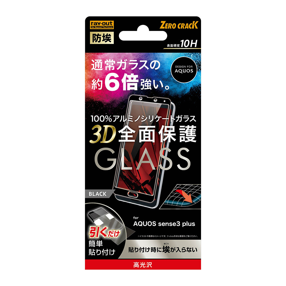 | 商品名 | AQUOS sense3 plus ガラス 防埃 3D 10H 全面 ブラック RT-AQSE3PRFG/BCB |