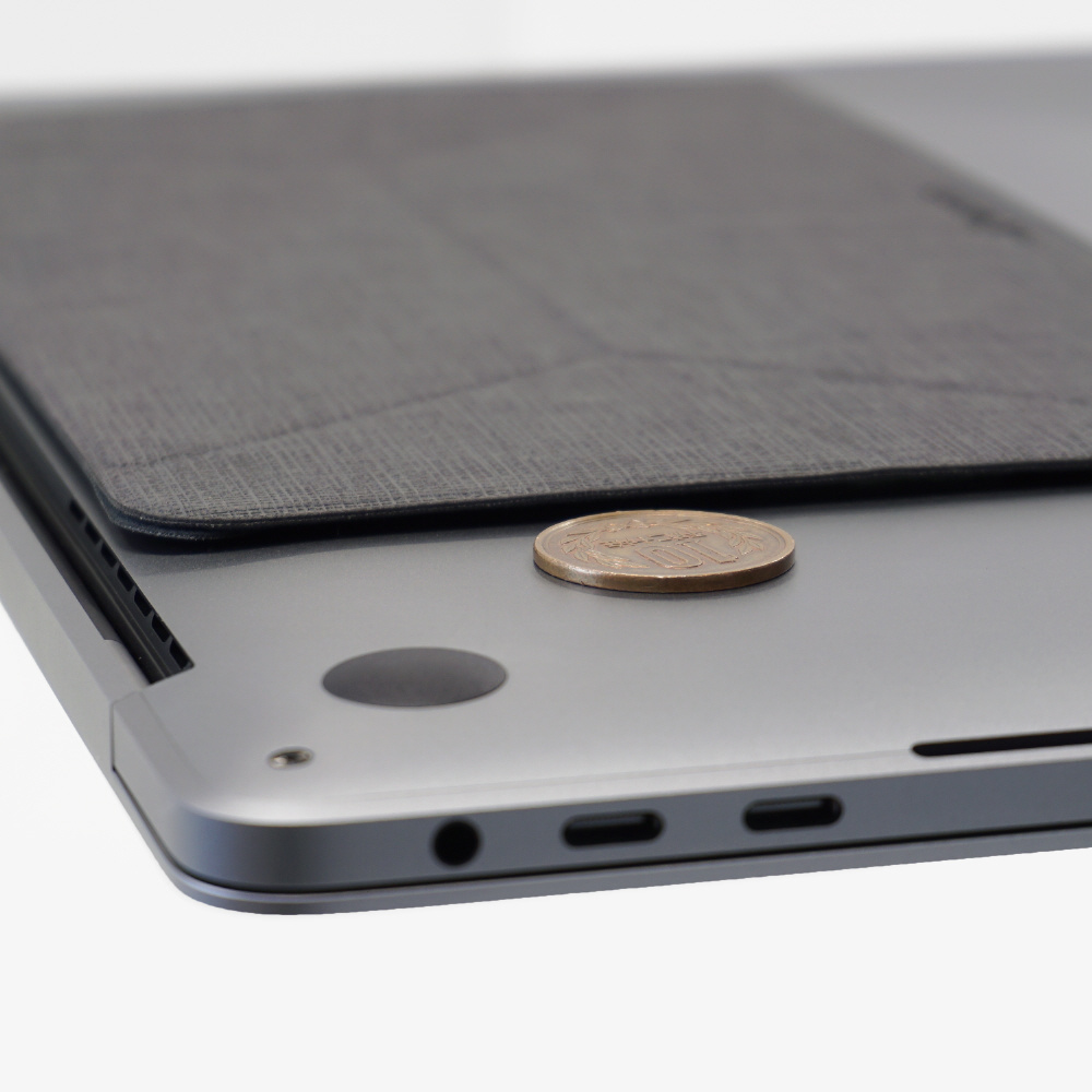 グラスファイバーとPUレザーでコンパクトに作られた本製品は、重さ約70g、厚さ約3mmと、かさ張らず、ノートパソコンの利便性を損なうことなく携帯できます。