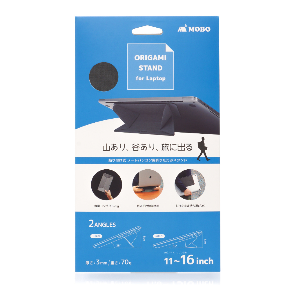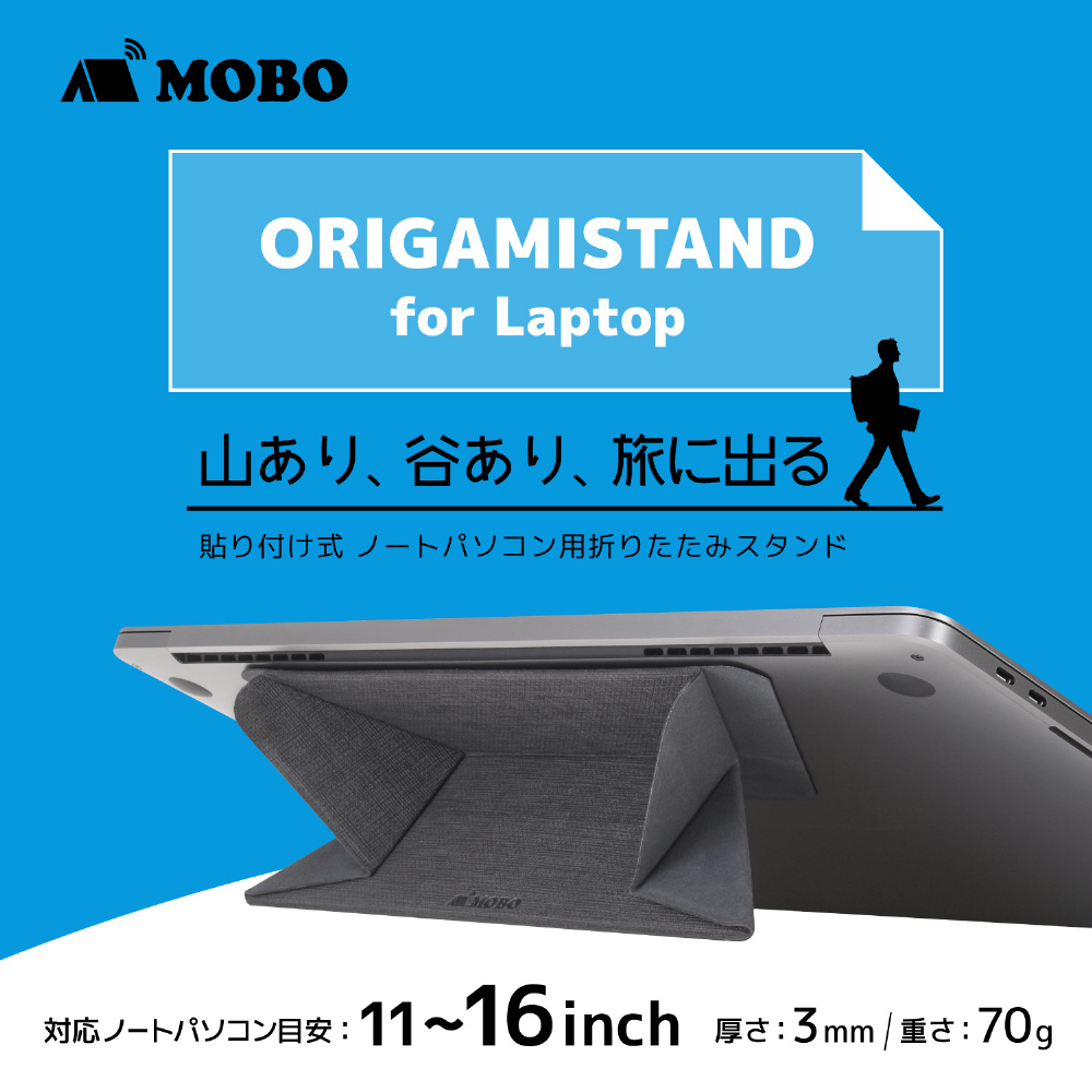 MOBO ノートパソコン用 折りたたみ スタンド 「ORIGAMI STAND for Laptop」 貼り付け式 軽量 薄型 滑り止めゴム付