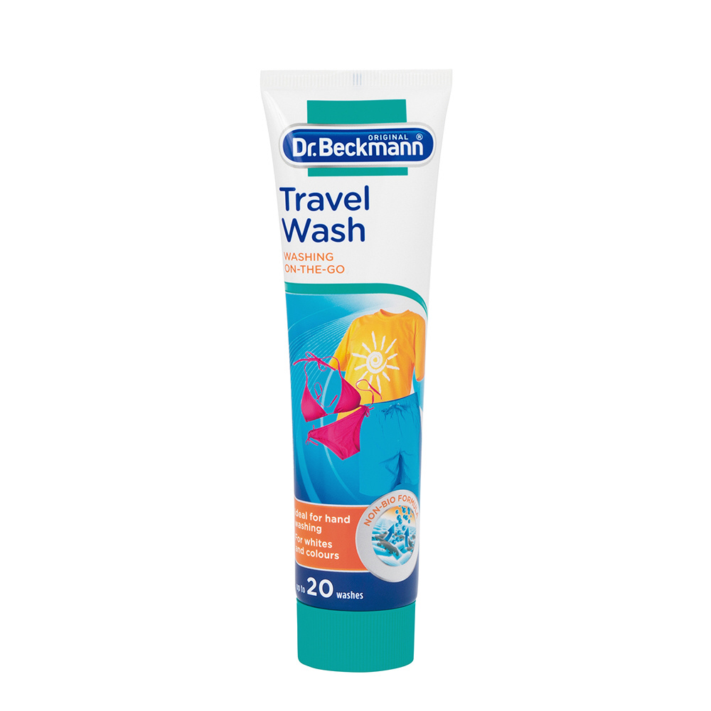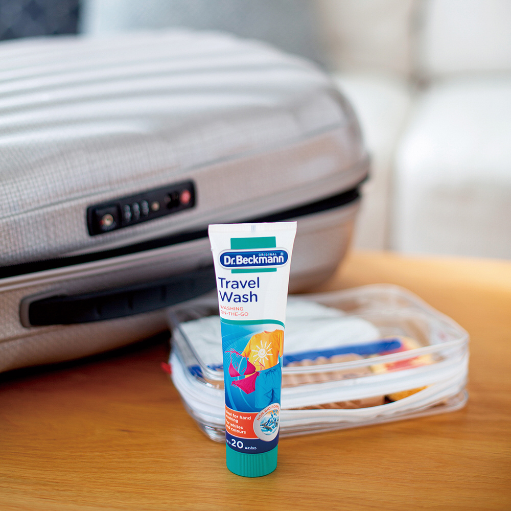 旅行先で下着やストッキング、水着はホテルの洗面所でさっと洗濯したいもの。長期の旅行ではこまめに洗って着回して荷物は軽く。チューブタイプのジェル状洗剤なので使用量を加減でき、持ち運びにも便利。