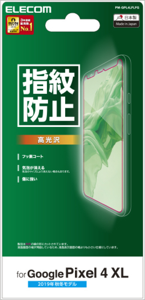 Pixel 4 XLの液晶画面をキズや汚れから守る、指紋防止タイプの高光沢フィルムです。