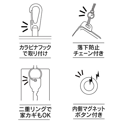 ●取り付けに便利なカラビナフック付きです。