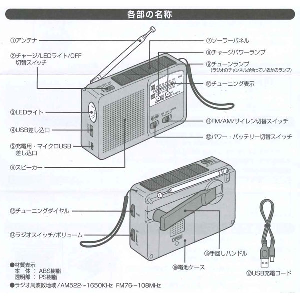 アウトドアや非常時の備えに。6WAY マルチレスキューラジオ