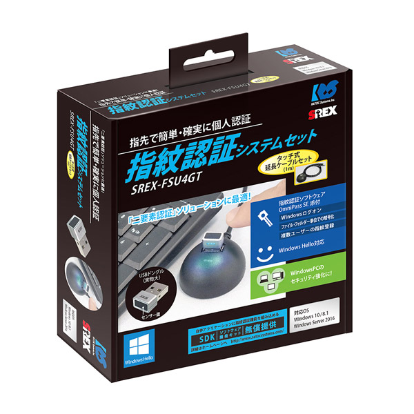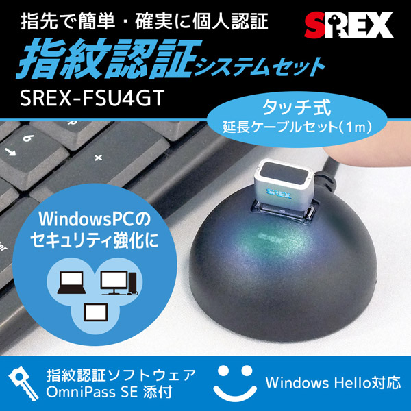 タッチ式 USB接続指紋センサーシステムセット USB拡張ケーブル(1m) バンドルモデル SREX-FSU4GT