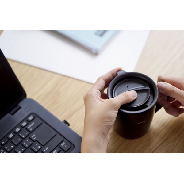 冷めにくいスライド式のフタ付きなので、オフィスや自宅でもこぼしにくくスムーズな移動ができます。