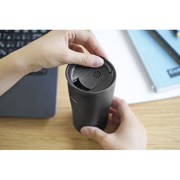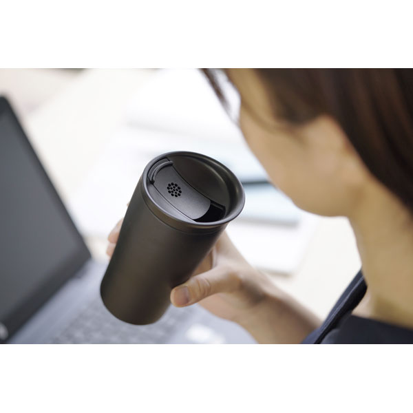 冷めにくいスライド式のフタ付きなので、オフィスや自宅でもこぼしにくくスムーズな移動ができます。