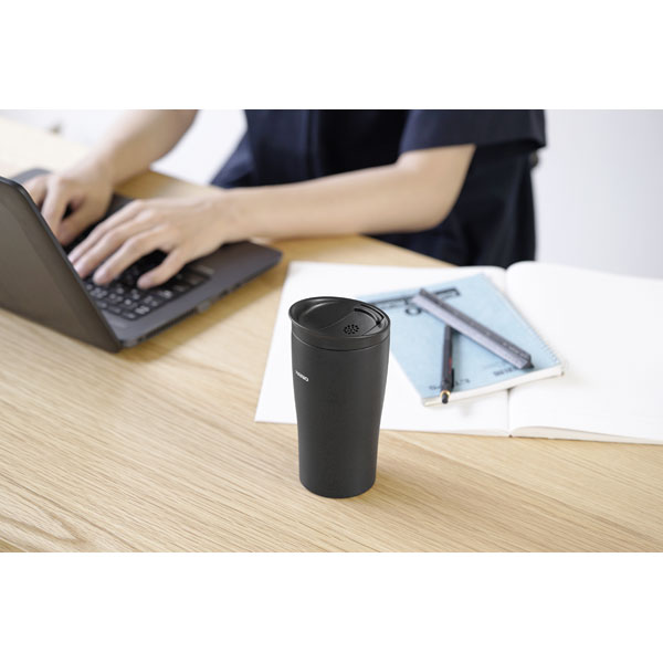 オフィスや自宅での使用に便利なフタ付き保温タンブラー。