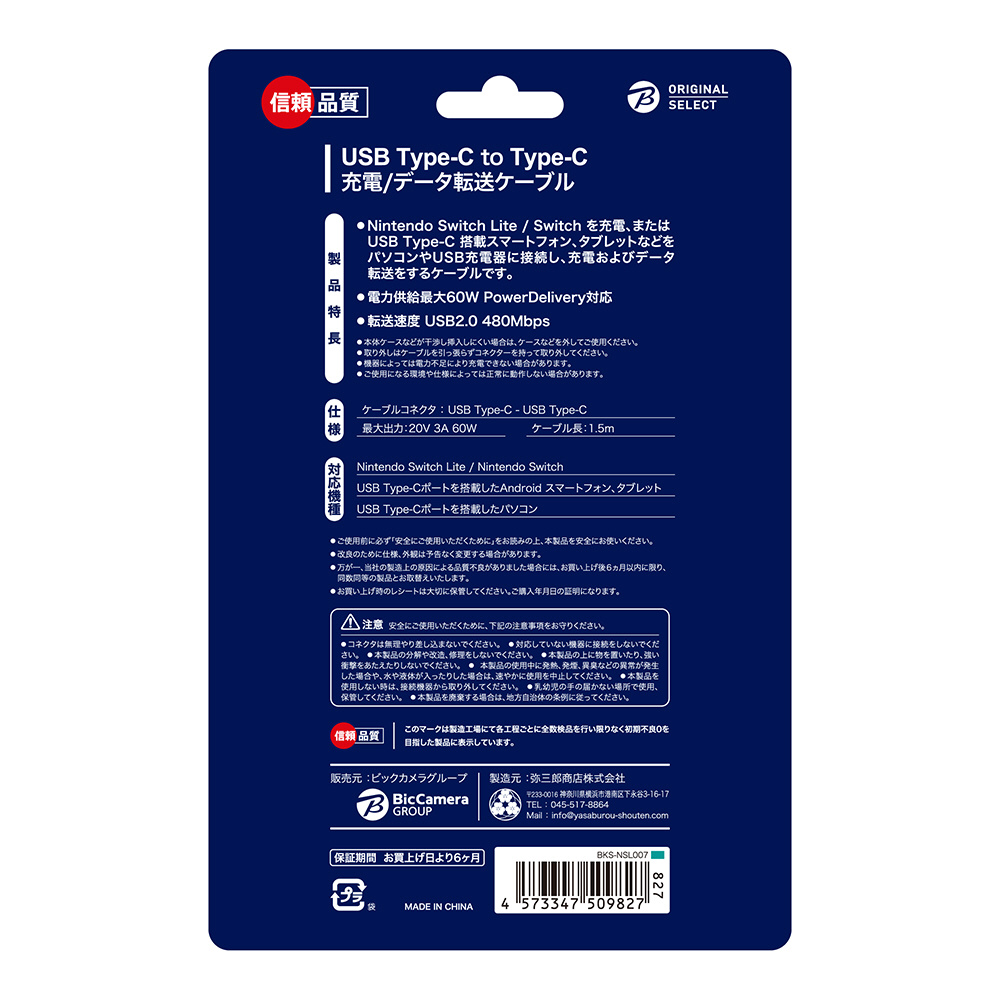 | 商品名 | SwitchLite用 C to C充電ケーブル 1.5m |