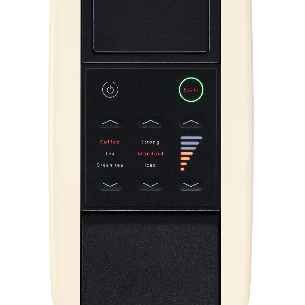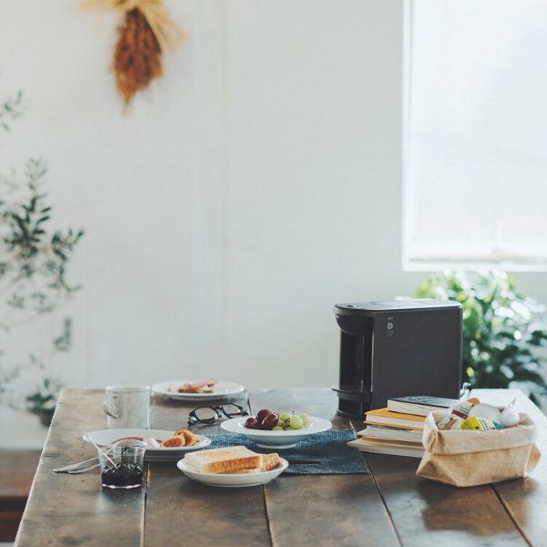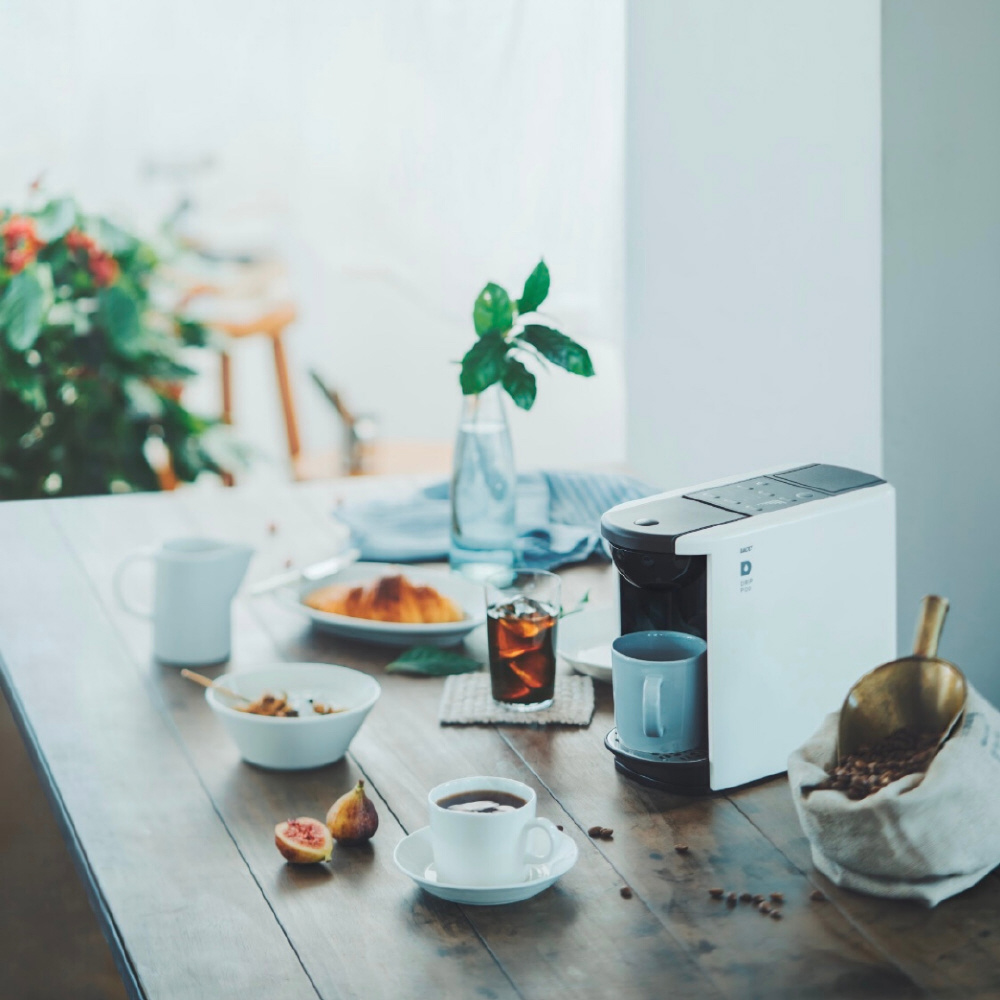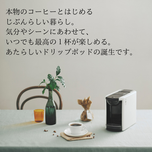 ボタン一つで本格ハンドドリップコーヒーが楽しめるカプセル式コーヒーメーカー。シンプルでコンパクトなデザインです。
