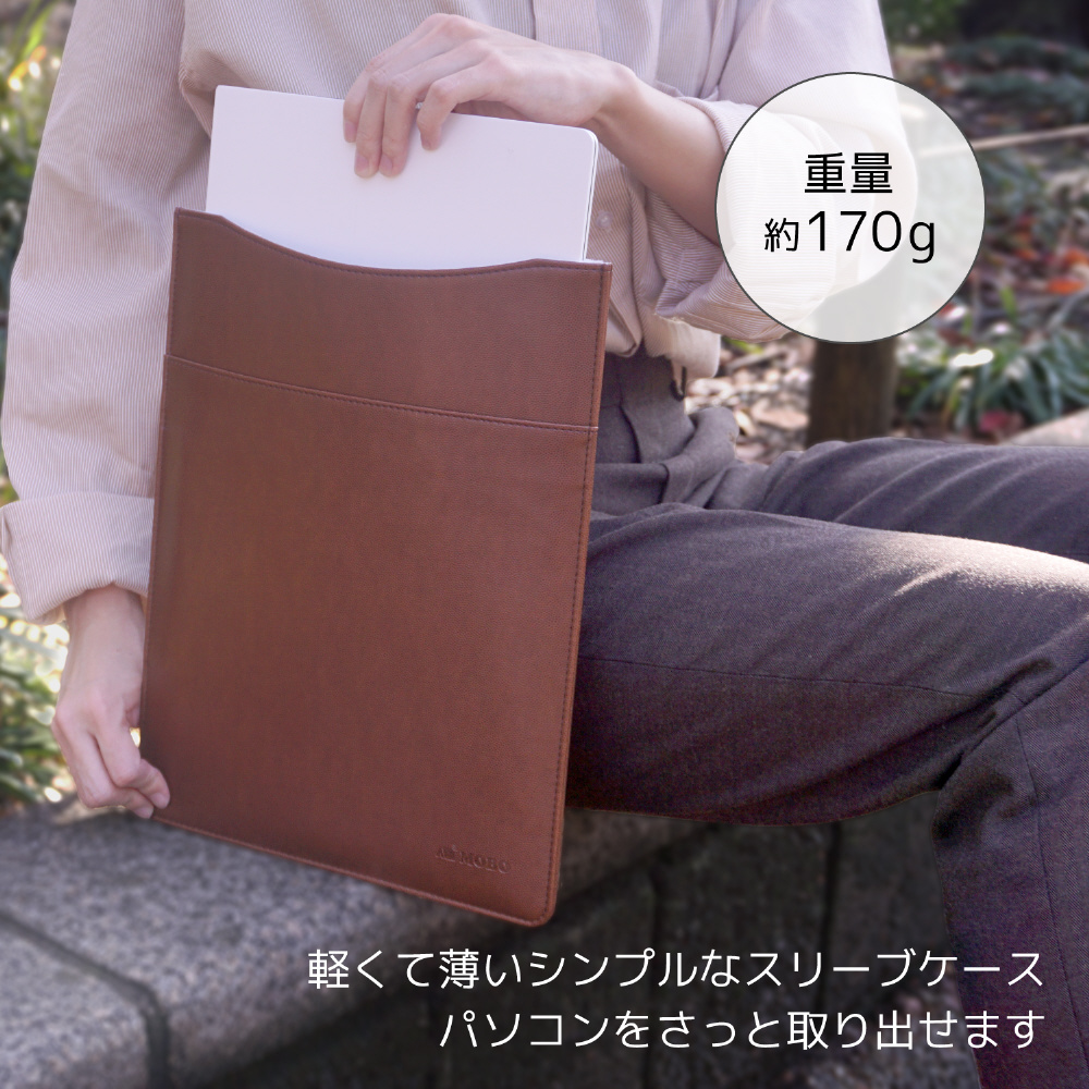 薄くて軽いシンプルなスリーブケースは、バッグに入れてもかさ張りません。パソコンをさっと取り出せる手軽さも人気。