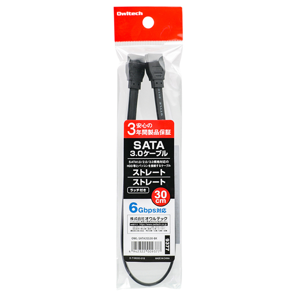 SATAケーブル 高耐久3年保証 ラッチ付き(30cm) OWL-SATA3SS30-BK ブラック