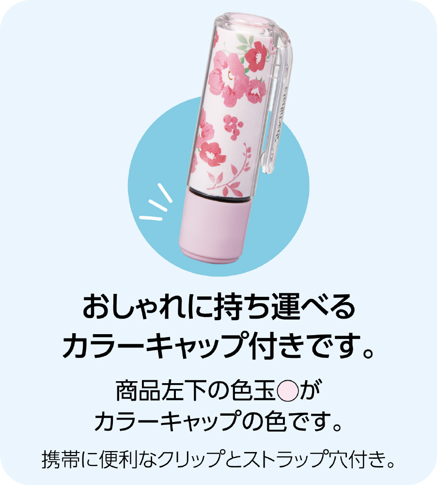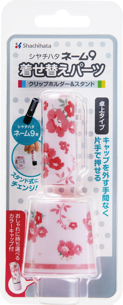 お手持ちのネーム9を着せ替えるホルダーとデスクに立てて置くことができるスタンドがセットになった商品です。カラフルな花柄やおしゃれな北欧柄など、自分の好みに合わせて、いろいろなデザインに着せ替えることができ、デスクまわりを華やかに彩ってくれます。スタンド式なのでキャップの開け閉めが不要で片手で簡単に使用できます。