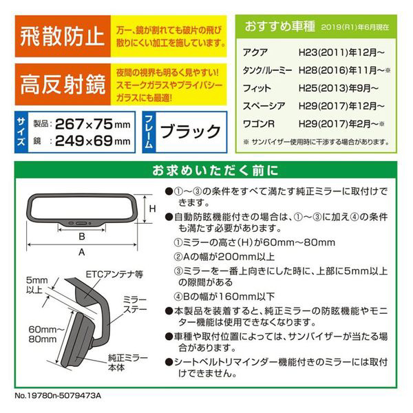 ・純正ミラーより大きなサイズのミラーで、後方の視界を広げることができるセーフティーグッズです。