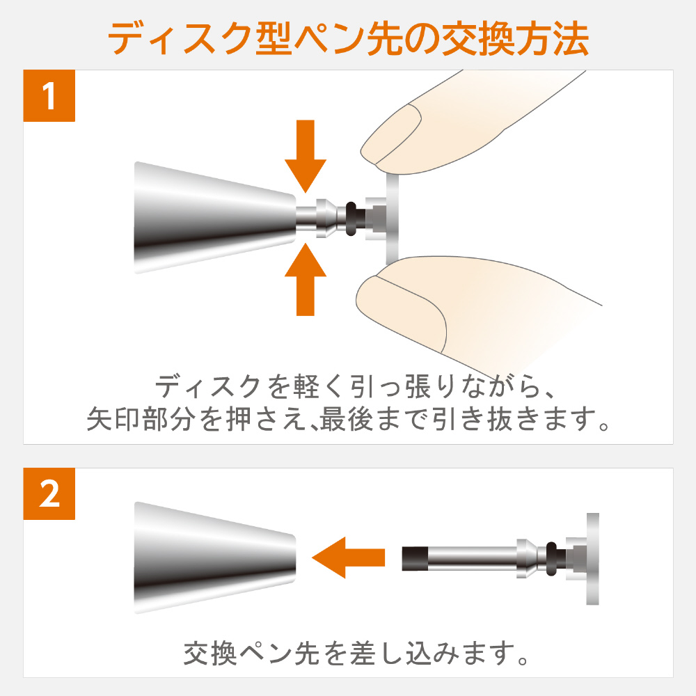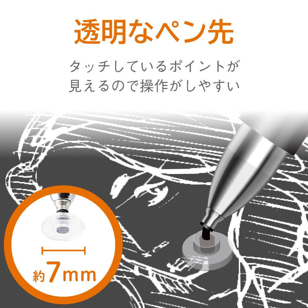 透明なディスクタイプのペン先により、狙い通りに細やかな操作ができるタッチペンです。