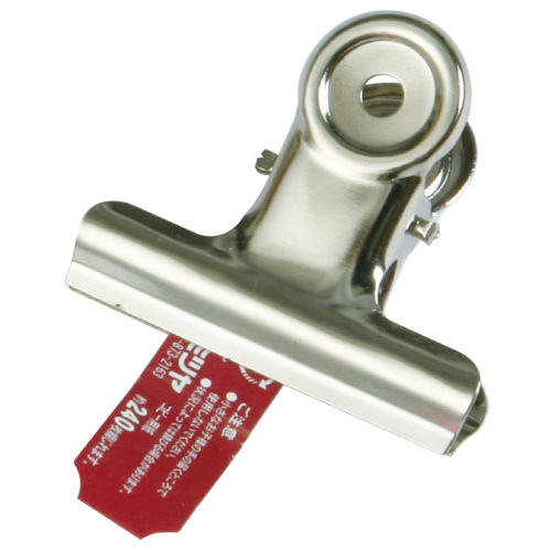 強力なバネがガッチリ書類をまとめます。持部の穴がフックを可能にします。