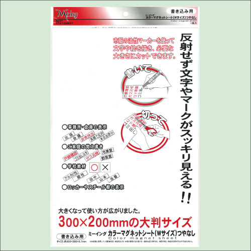 サイズ200ミリ×300ミリの書き込み式艶無マグネットシート。厚みが0.7ミリで磁力もしっかりでカットしやすい。