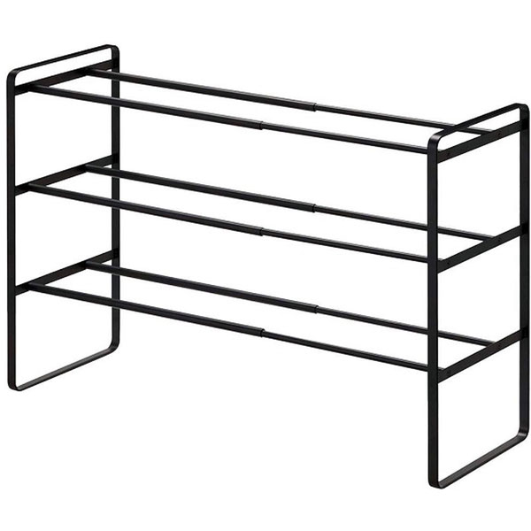 フレーム 伸縮シューズラック3段 ブラック 07556