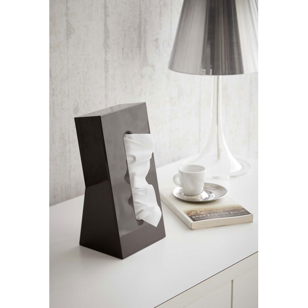 スリムに立てて置ける省スペースティッシュケース。シンプルでスタイリッシュなデザインなのでリビングにパウダールームに置く場所を選びません。