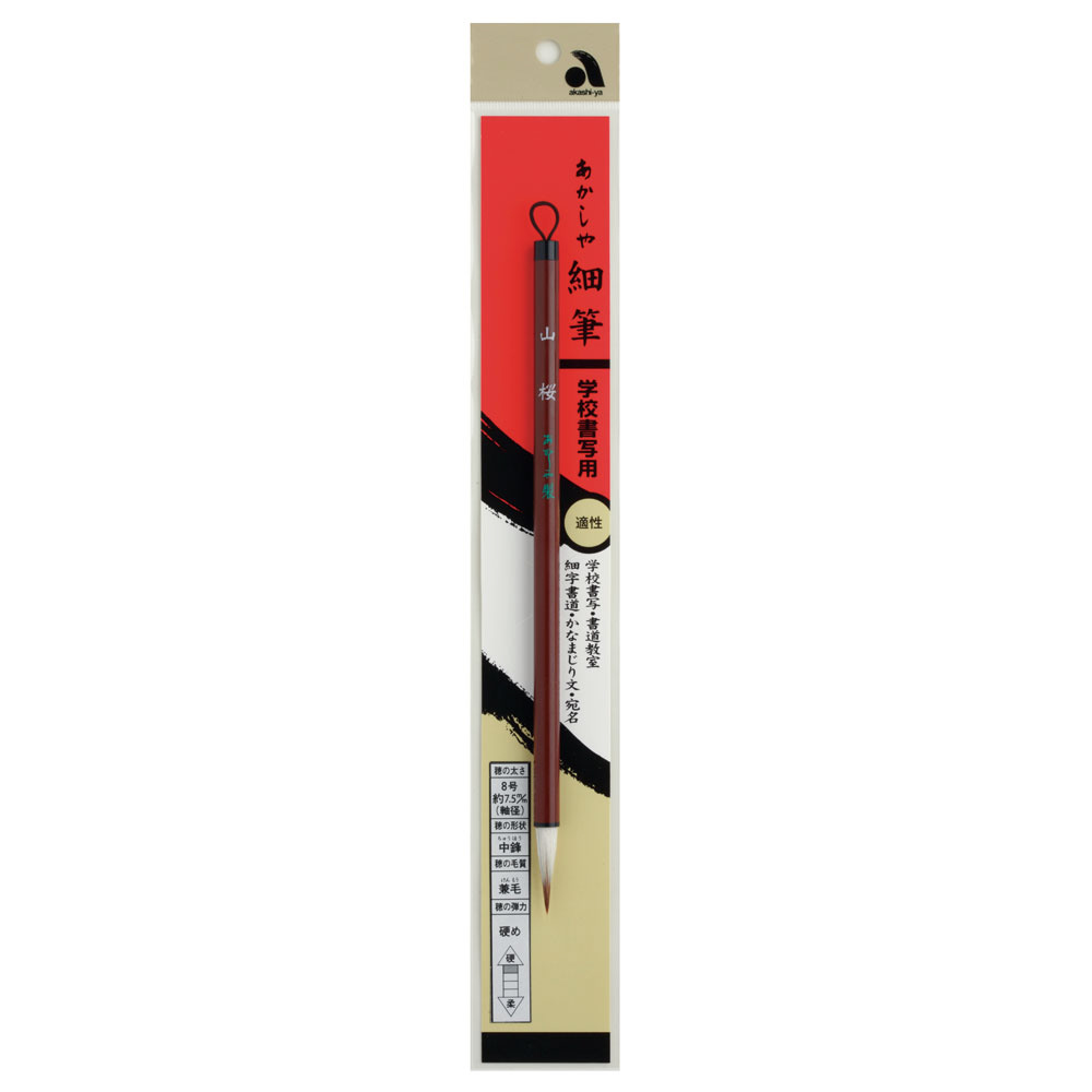 この筆は初心者の半紙名前書きだけではなく、中学校での細字書道、一般手紙、葉書用としてもご使用になれます。先端はよくまとまり、腰の弾力は硬めで、楷書・行書のどちらにでも適しています。