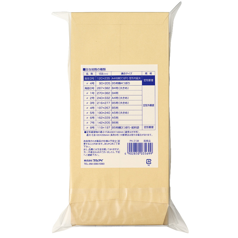 | 商品名 | クラフト封筒Z長385G100枚 PNZ138 |
