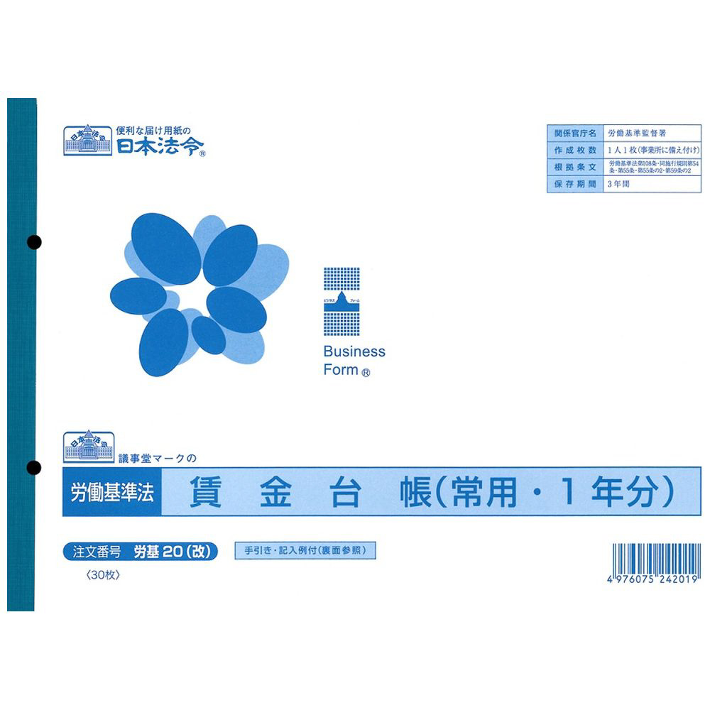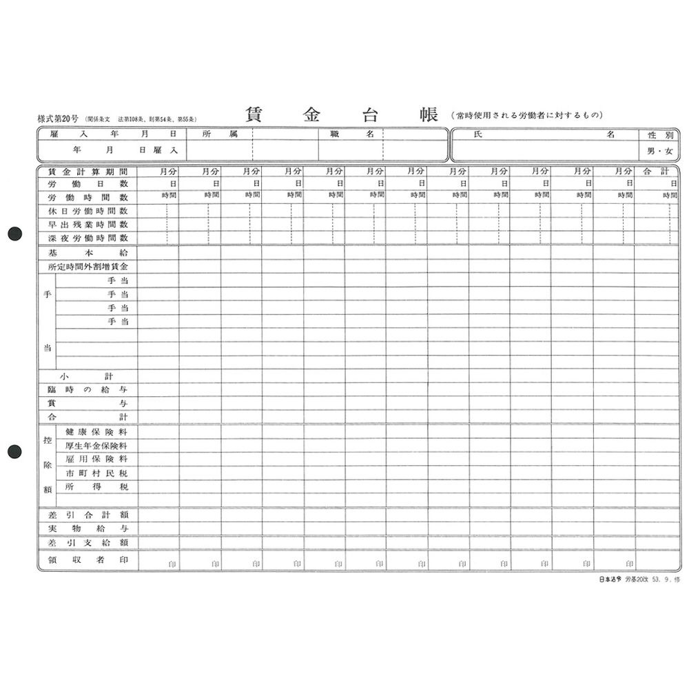 本商品は、常時労働者(日々雇い入れられる者でも1カ月を超えて引き続き使用される労働者を含む)を使用する事業場において調整し、備え付けておかねばならない賃金台帳です。