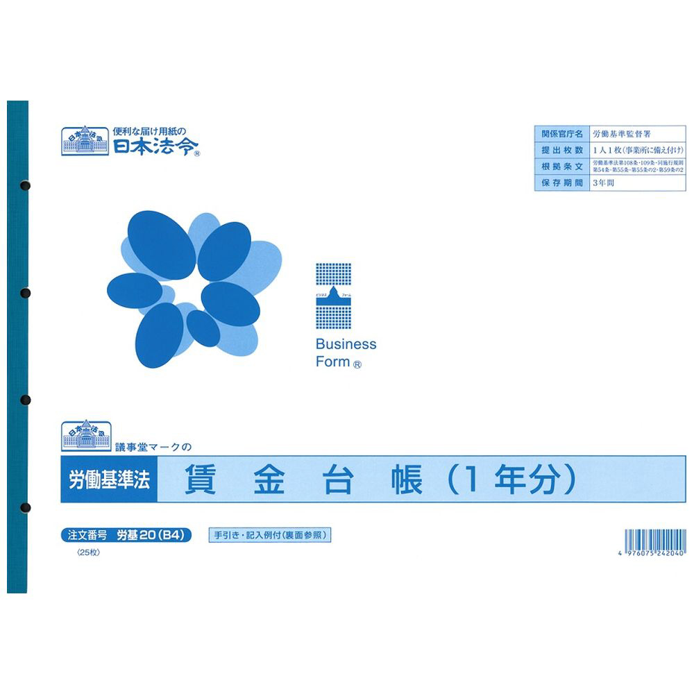 | 商品名 | 労基20(B4) 賃金台帳 |