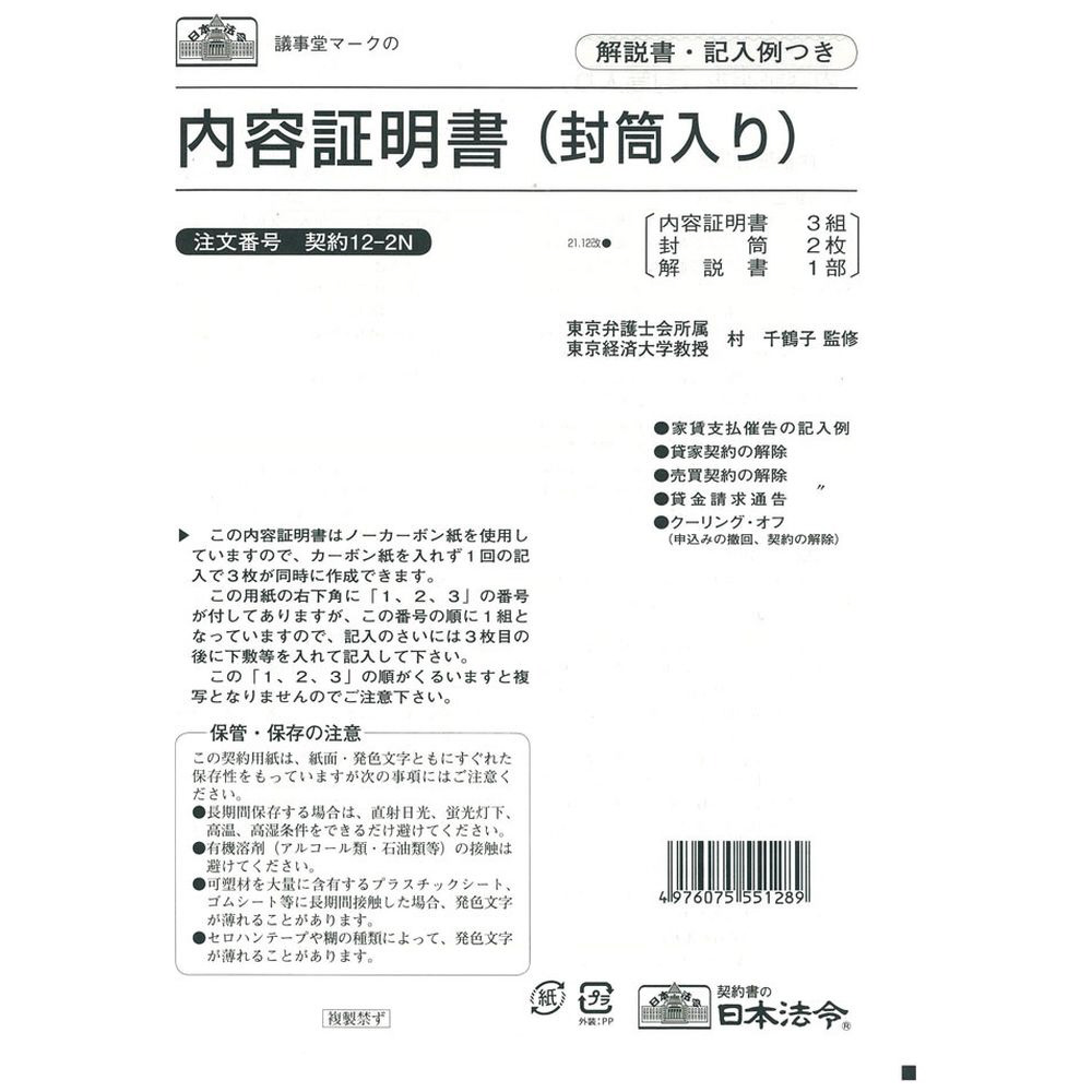 | 商品名 | 内容証明書(B4・3組) 契約12-2N |