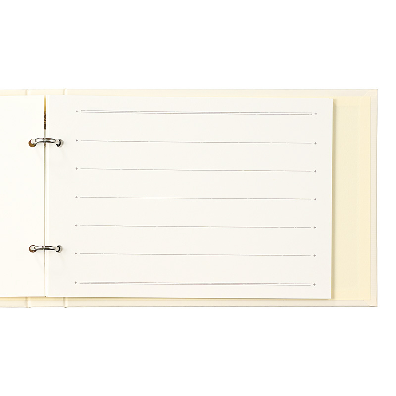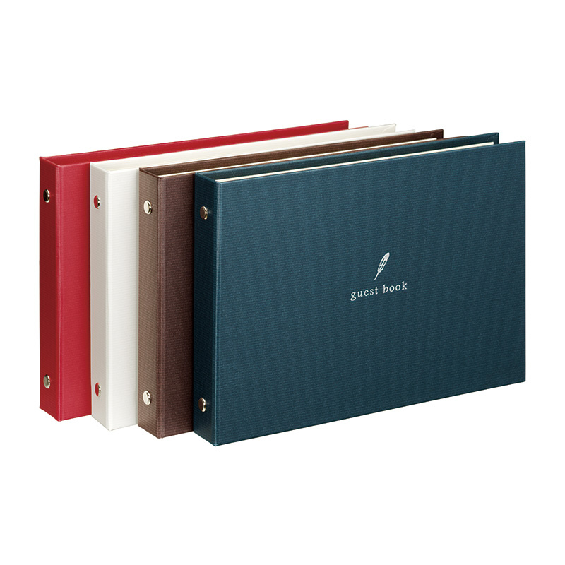 書きやすい横書きタイプのバインダー式芳名帳です。ポイントのホログラム箔押しが品よくおしゃれです。結婚披露宴や二次会はもちろん、写真・絵画の展覧会やピアノ・バレエの発表会などの記帳としても最適です。