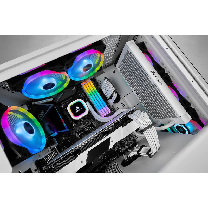 CORSAIR iCUE制御に対応した140mm 両面RGBファン裏表4つのRGBライトループに32個の高輝度LED最大6つのRGBファンを同時制御するiCUE Lighting Node COREファン中央両面に刻印されたメタリックロゴPWM対応4ピン電源コネクタ搭載静音性を高める薄型ファンブレード採用回転抵抗を低減させたハイドロリックベアリング共振を抑制する防振ラバーダンパーCORSAIR QL Series iCUE QL140 RGB