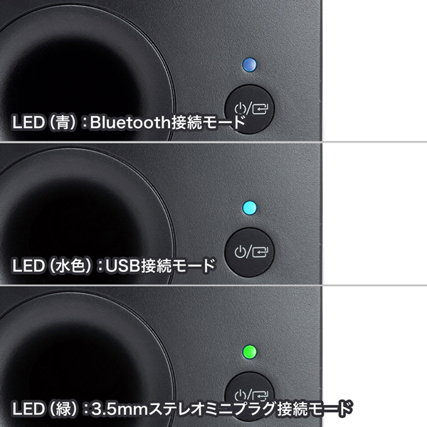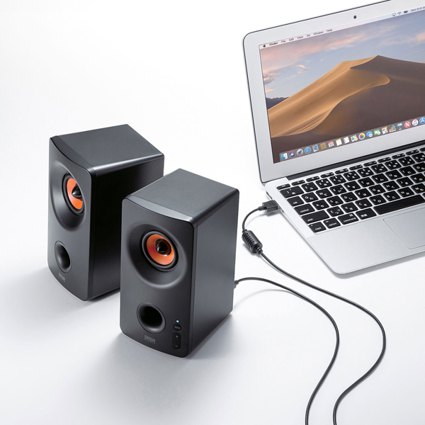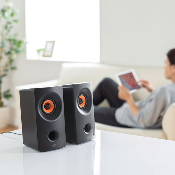 Bluetooth接続、USB接続、3.5mmステレオミニプラグ接続に対応した幅広いシチュエーションで利用できる2chスピーカー