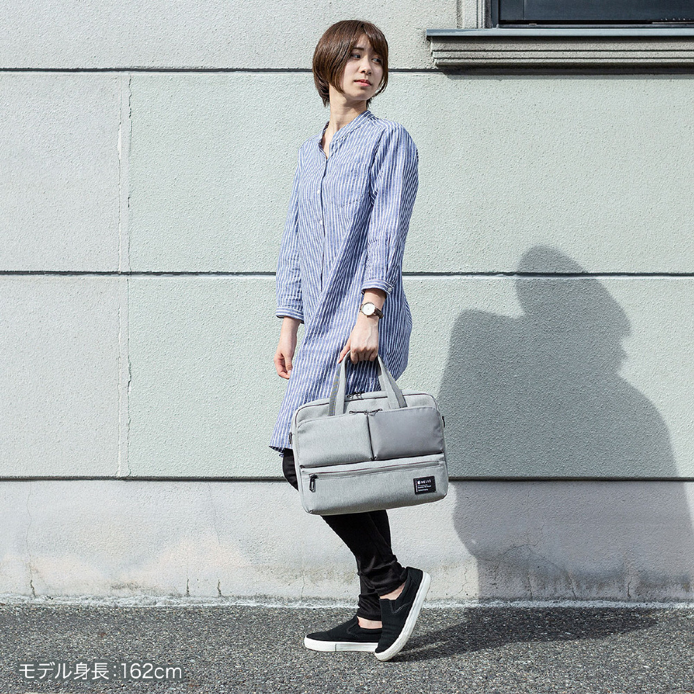 3つのフロントポケットが特徴の軽くて便利なカジュアルPCバッグ。13.3インチワイド対応。