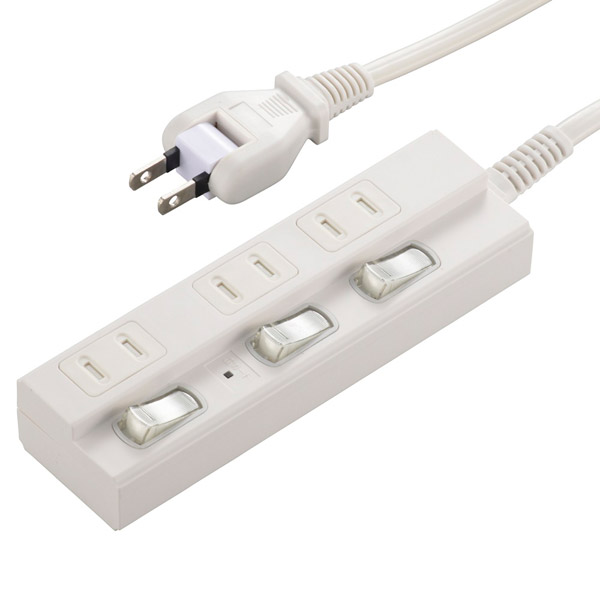 節電タップ 白 HSBK-TPK33-W [3.0m /3個口 /スイッチ付き(個別)]