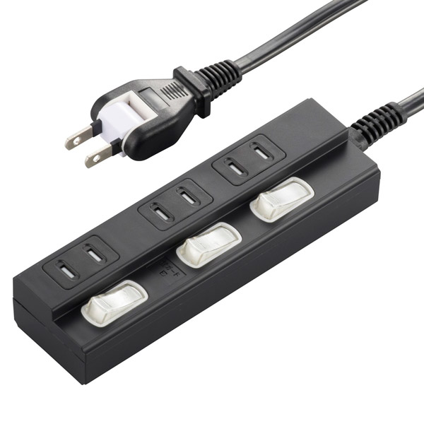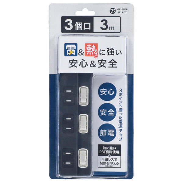 節電タップ 黒 HSBK-TPK33-K [3.0m /3個口 /スイッチ付き(個別)] 【864】