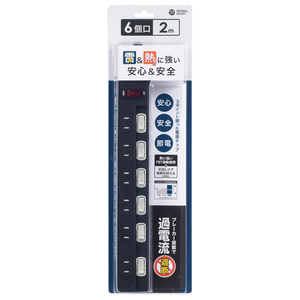 | 商品名 | 節電タップ 黒 HSBK-TPKV62-K [2.0m /6個口 /スイッチ付き(一括・個別混合)] |