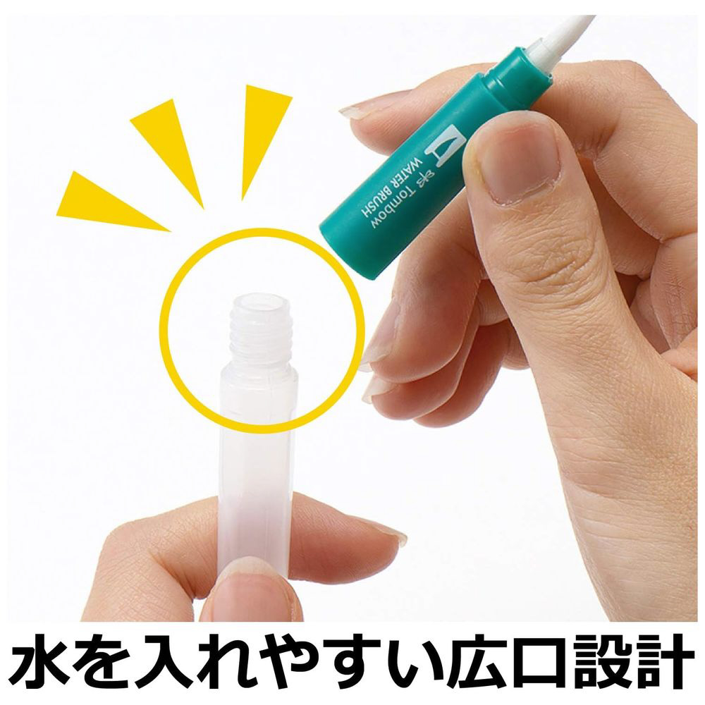 ●蛇口から水を補給しやすい広口設計の水筆。細部を描きやすい小筆