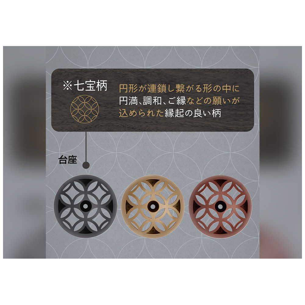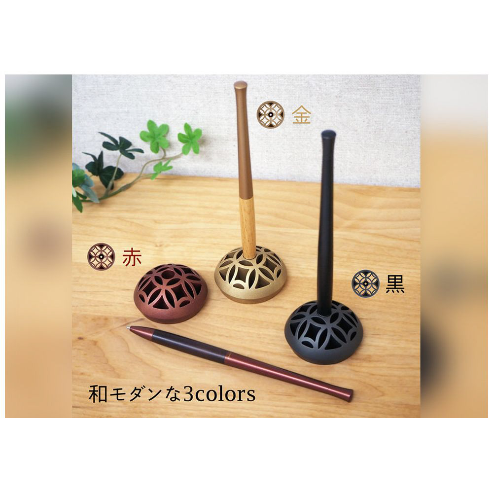 旅館やホテルのフロントや客室、店舗のレジ、オフィスの受付に省スペースで設置でき、キャップがないためすぐに手に取って書くことができます。台座には日本の伝統的な七宝柄を立体的に配置し、和モダンで高品位なデザインです。