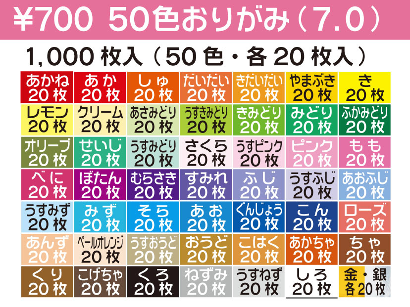 | 商品名 | 千羽鶴折り紙 7cm 50色おりがみ 1024 |