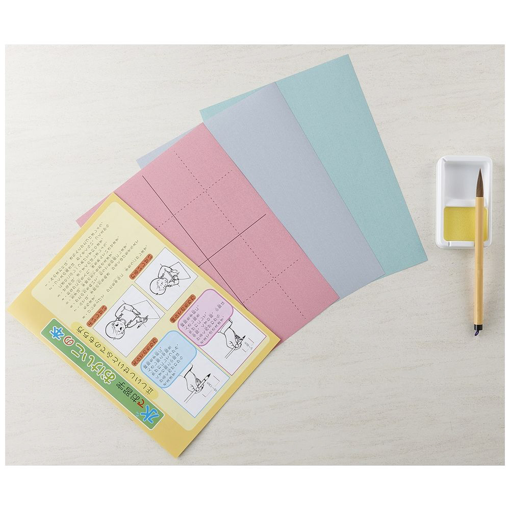 水で書けるお習字半紙3枚(黒・緑・赤〈マス目入〉)、太筆1本、水書き用硯(スポンジ入り)、お稽古の本のセット。