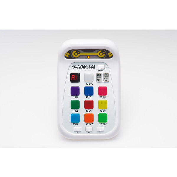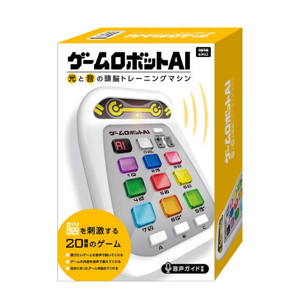 ゲームロボットAIは、音と光で音感・記憶力・判断力・推理力・瞬発力・計算力を使う20種の多彩なゲームが遊べるマシンです。