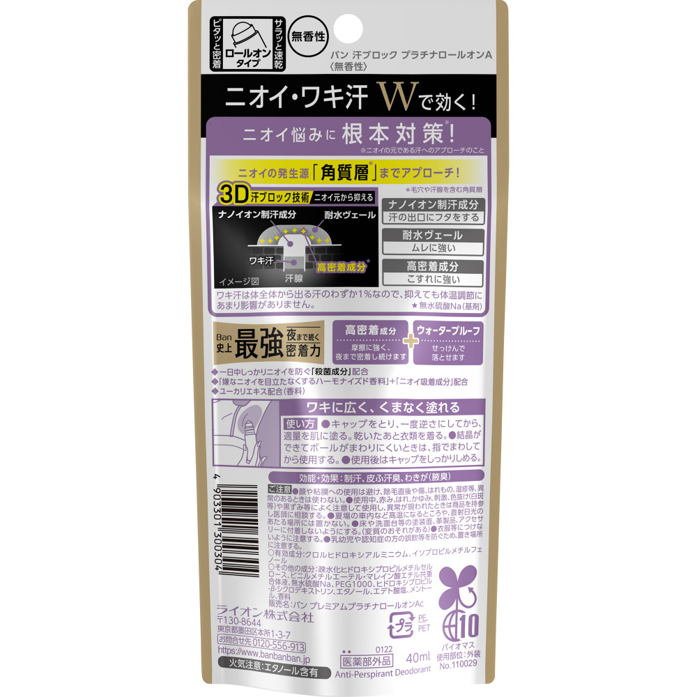 | 商品名 | Ban 汗ブロック プラチナロールオン 無香性 |
