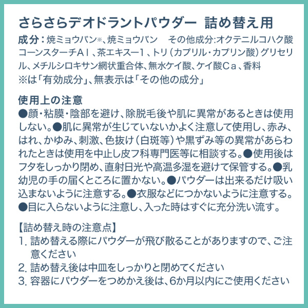 | 商品名 | デオナチュレ デオドラントパウダー 詰め替え用 |