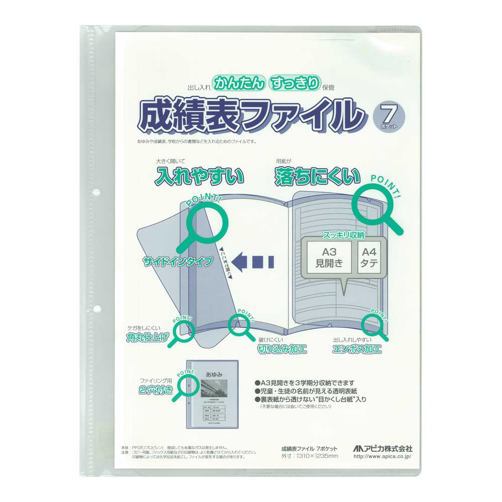 成績表の保存に適した、7ポケットタイプのファイルです。