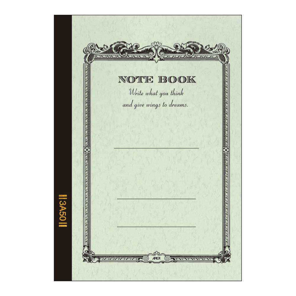 伝統的な飾り罫を表紙に施した実用ノートです。サイズ: A5 罫内容: 7ミリ横罫 本文枚数: 50枚