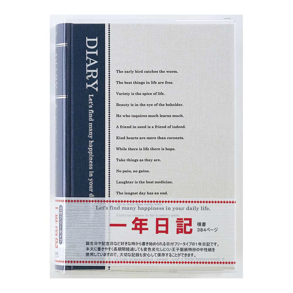 1年分を書き込める、フリータイプの日記帳です。サイズ: B6 罫内容: 横罫21行 本文枚数: 192枚 外装: 透明カバー