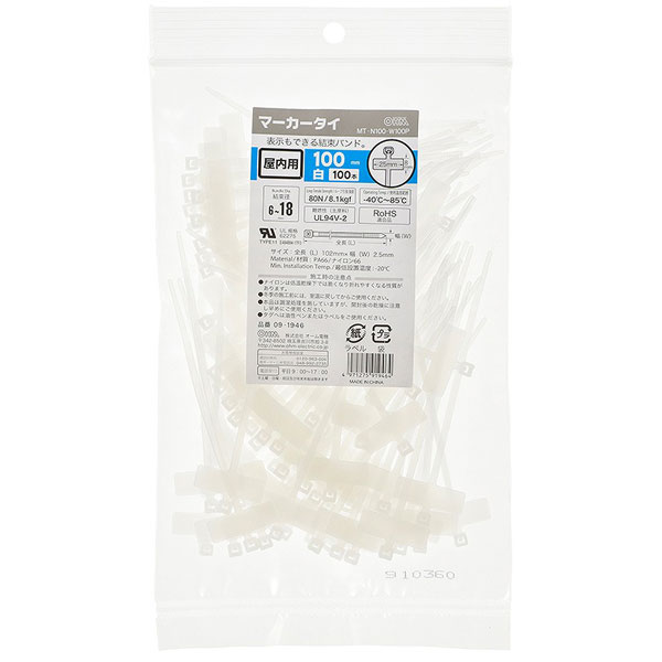 | 商品名 | マーカータイ 屋内用 100mm 白 100本入 |