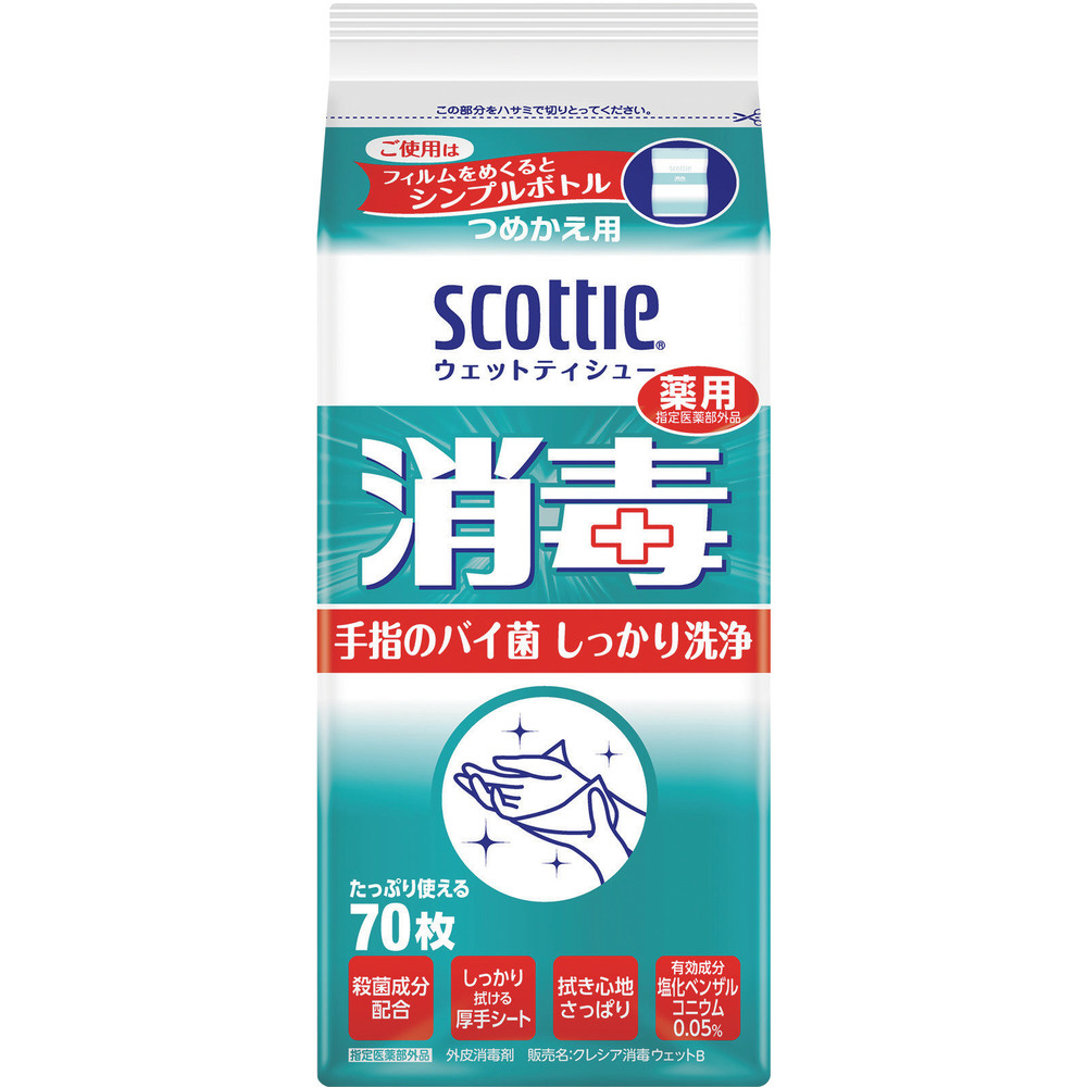 クレシア スコッティウェットティシュー消毒 70枚つめかえ用