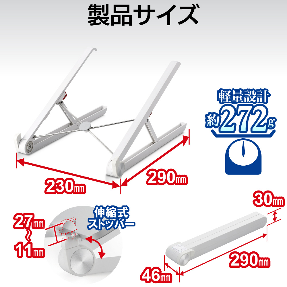 商品名 ノートパソコンスタンド[〜15.6インチ] ポータブル 2段階 ホワイト PCA-LTSC2WH