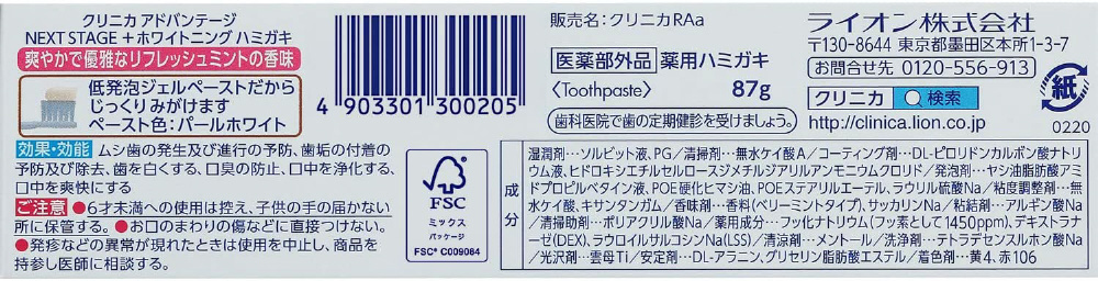 | 商品名 | クリニカアドバンテージNEXT STAGE +ホワイトニングハミガキ リフレッシュミント |