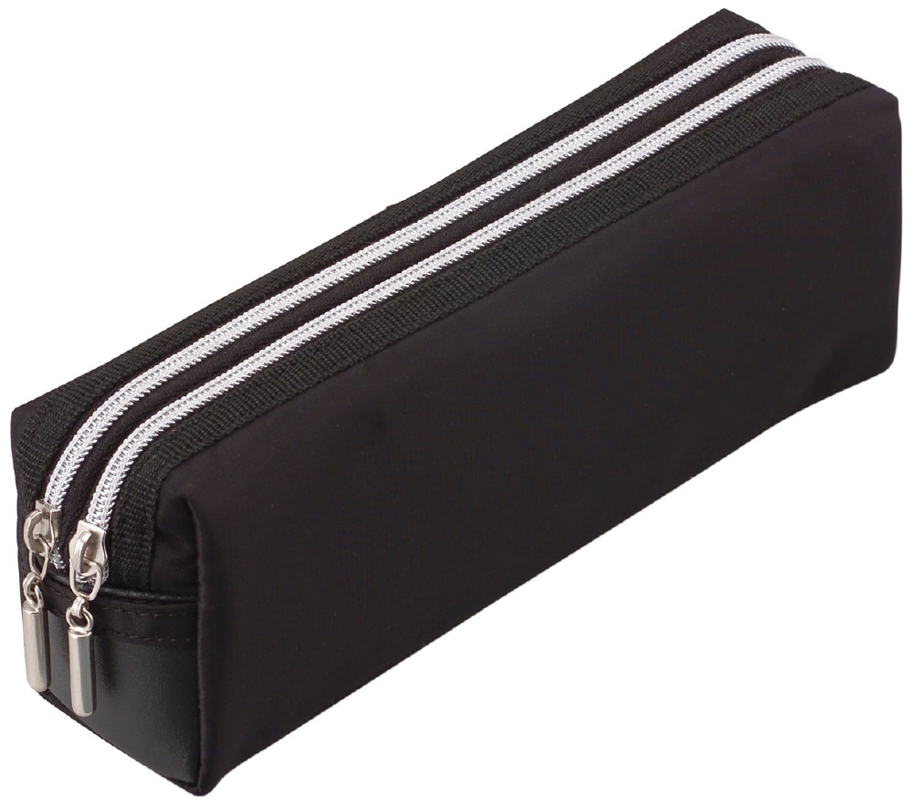 〔ペンケース〕 ダブルファスナーカラー H85mm ブラック FY279B